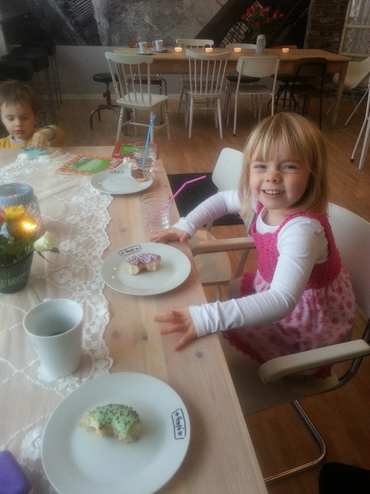 I går var jeg og barna innom kafeen og jeg er SÅ FORNØYD. Vi som satt rundt bordet følte at vi var kommet til en annen verden. Jeg følte at jeg satt midt i storbyen, til tross for den litt landlige stilen. Ikke det at jeg savner å bo i storbyen, men det er noe veldig hyggelig med følelsen likevel.
